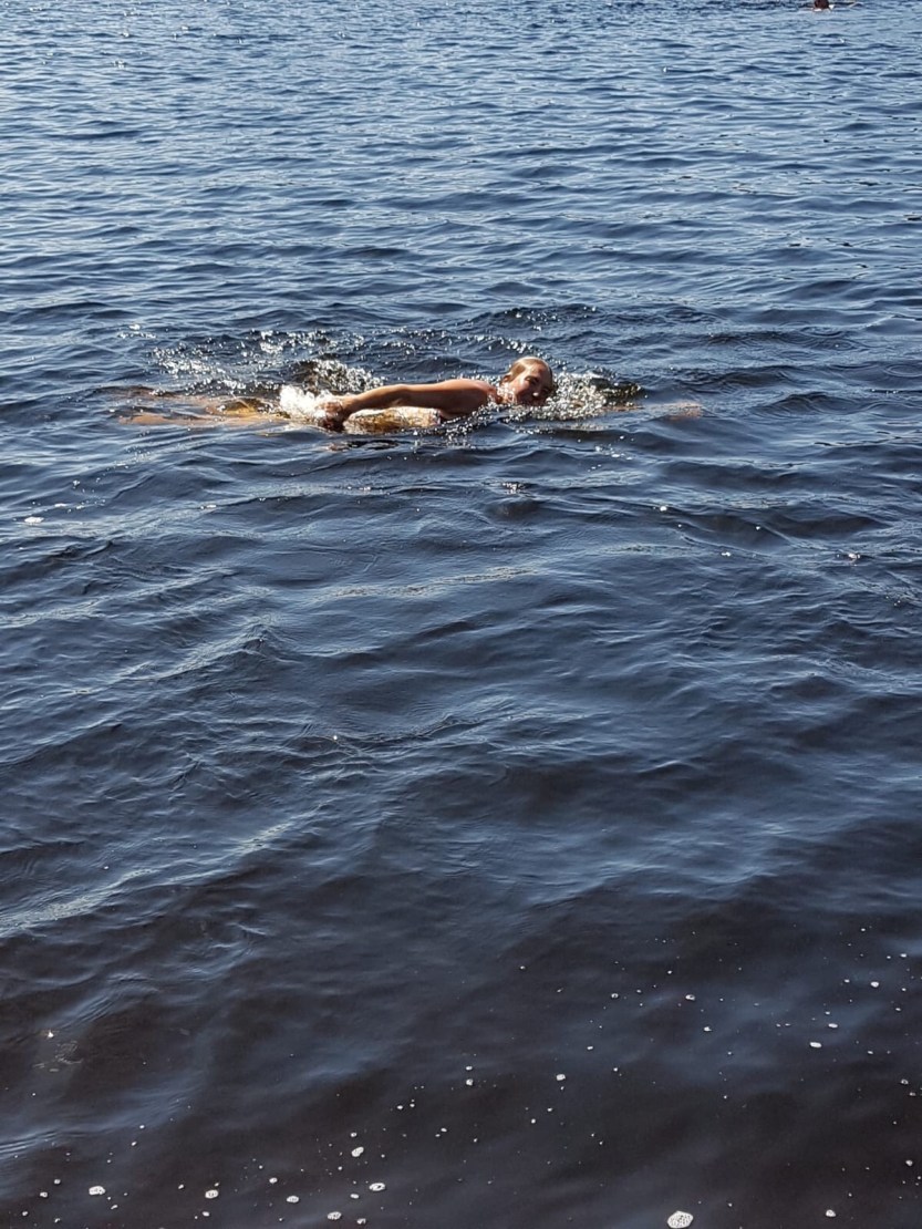 Bjuder här på två bilder från dagens sommarsverige. Den första bilden är post svettig crossfit och bild nummer 2 är från en av sommarens utmaningar, att få bättre crawlteknik. Nåja, det går väl sådär än så länge men med lite övning så ska jag nog få till det, kan nog bli så att jag behöver införskaffa en våtdräkt för något säger mig att värmen inte håller i sig till hösten….eller?!
