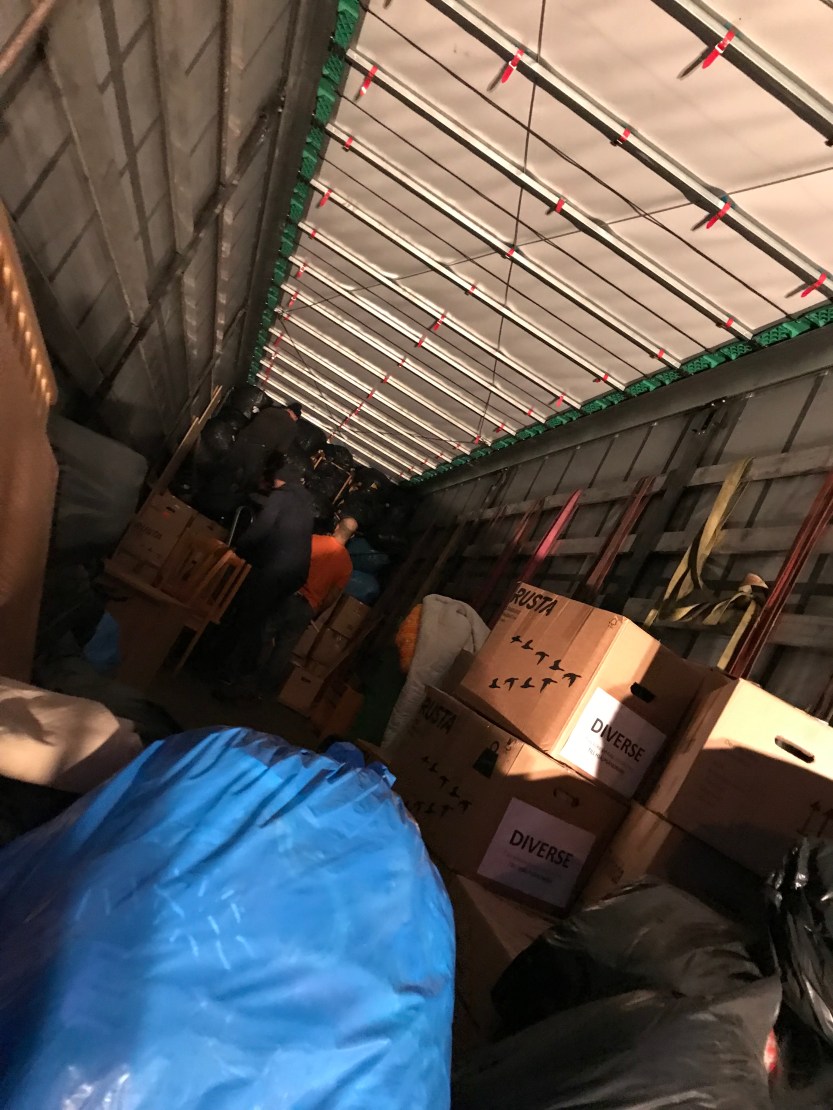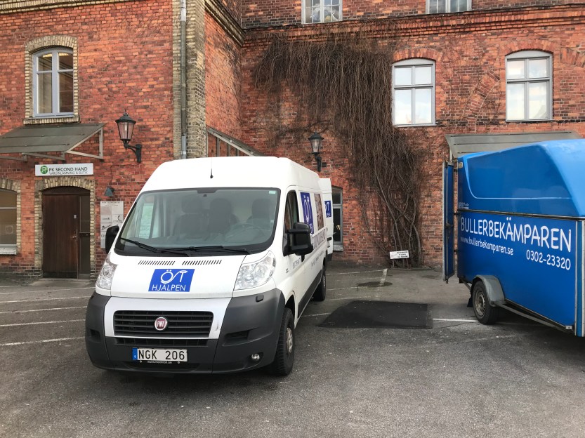 Den här gången tog vi vägen via Bullerbekämparen för att hämta ett släp så vi kunde lasta så mycket som möjligt. Du vet jag är verkligen så tacksam för vad min kropp klarar av, det här är sån där go vardagsträning när den är som bäst. En del saker är riktigt tunga, en del lite otympliga men det är ändå få grejer som jag inte fixar att bära och lyfta in i respektive bil. Sedan att vi är ett sånt härligt gott gäng med så olika gåvor som gör det tillsammans, ja det är ju det finaste med det. Jag tror verkligen Gud gillar när vi tillsammans får använda de gåvor vi fått för att tjäna varandra och förändra den här världen tillsammans, en blå plastsäck åt gången.