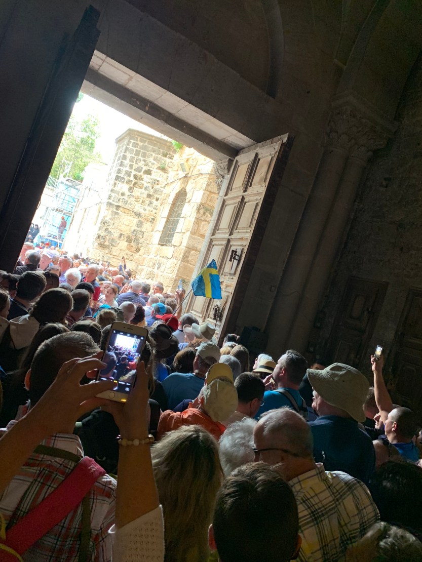 Det här var bland det knasigaste jag varit med om, ett märkligt äventyr. En eftermiddag hängde jag med ett gäng konfirmander från Ockelbo och deras ledare. Dom blev guide runt Jerusalem och jag fick delas deras dag där en stund och höra om varför dom befann sig i Israel. Här har vi precis varit i gravkyrkan. Jag har lite svårt för just såna här platser just för att det har som oftast tendens till att bli lite för turistigt. Vi lyckades här att tajma en prosition så det blev ju totalt kaos i den här lilla kyrkan, för att inte tala om den här lilla ut-och ingången. Du vet, du kom knappt fram eller bakåt. Uttrycket som packade sillar fick liksom sig en helt ny betydelse, det är tur iallafall att jag inte har klaustrofobi. När vi kom ut kunde vi inte göra annat än att bara asgarva åt att vi just tajmade denna stund. Tacksam för att jag hade mitt fokus på flaggan för att hitta resten av gruppen. Ibland behöver vi liksom lite hjälp för att hitta fokus mitt där i bruset. Var hittar du ditt fokus när det brusar omkring dig?