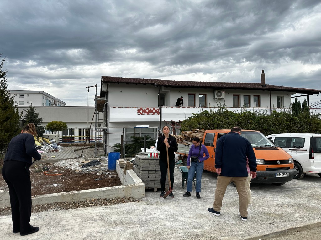 Här står vi utanför det nya House of hope som numera ligger i centrum av Kaçanik. Tack för möjligheterna Du ger Gud. Hjälp oss att se och höra när Du talar. 🙏